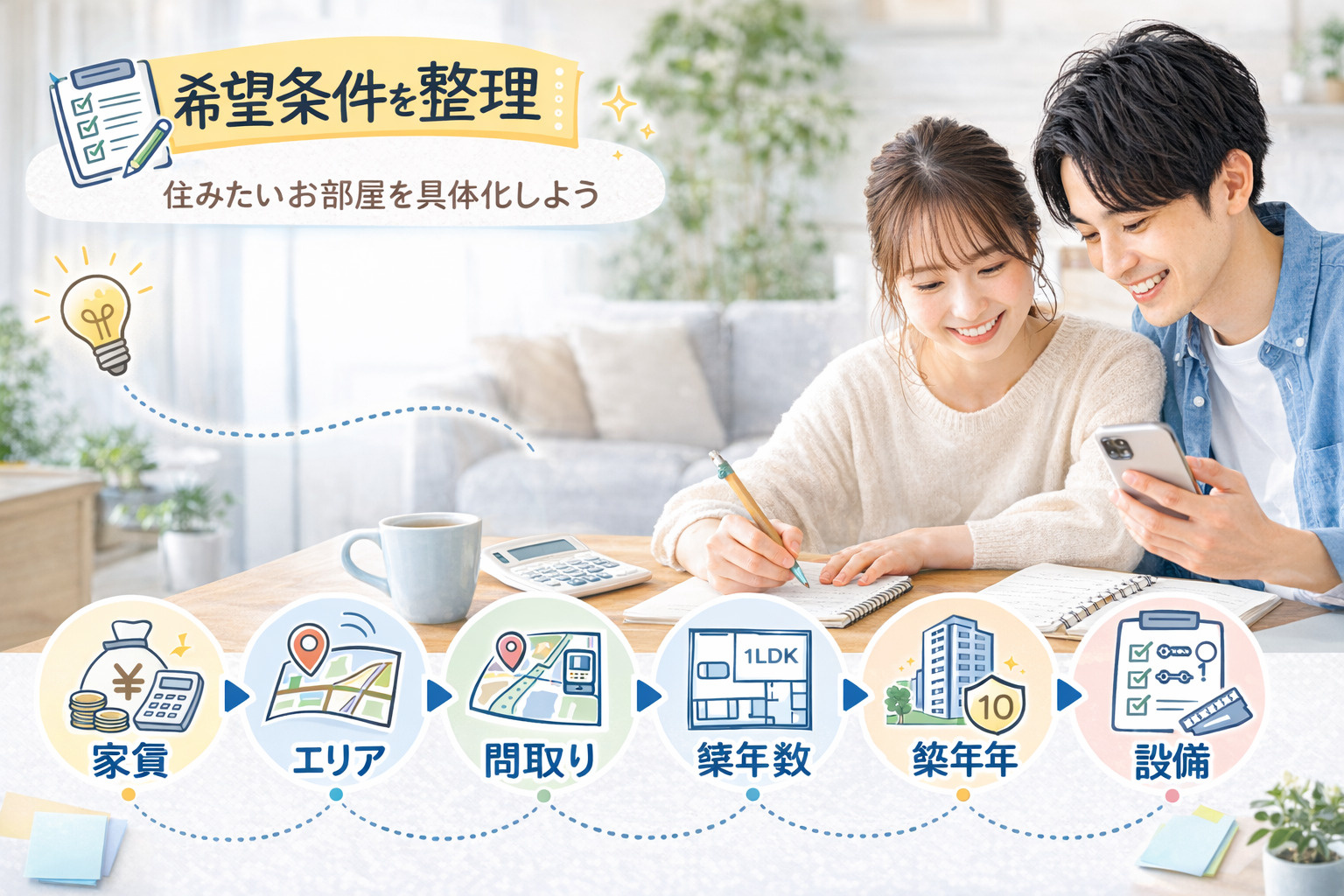 事前に流れを知っておくだけで、スムーズに理想のお部屋を見つけることができます。
