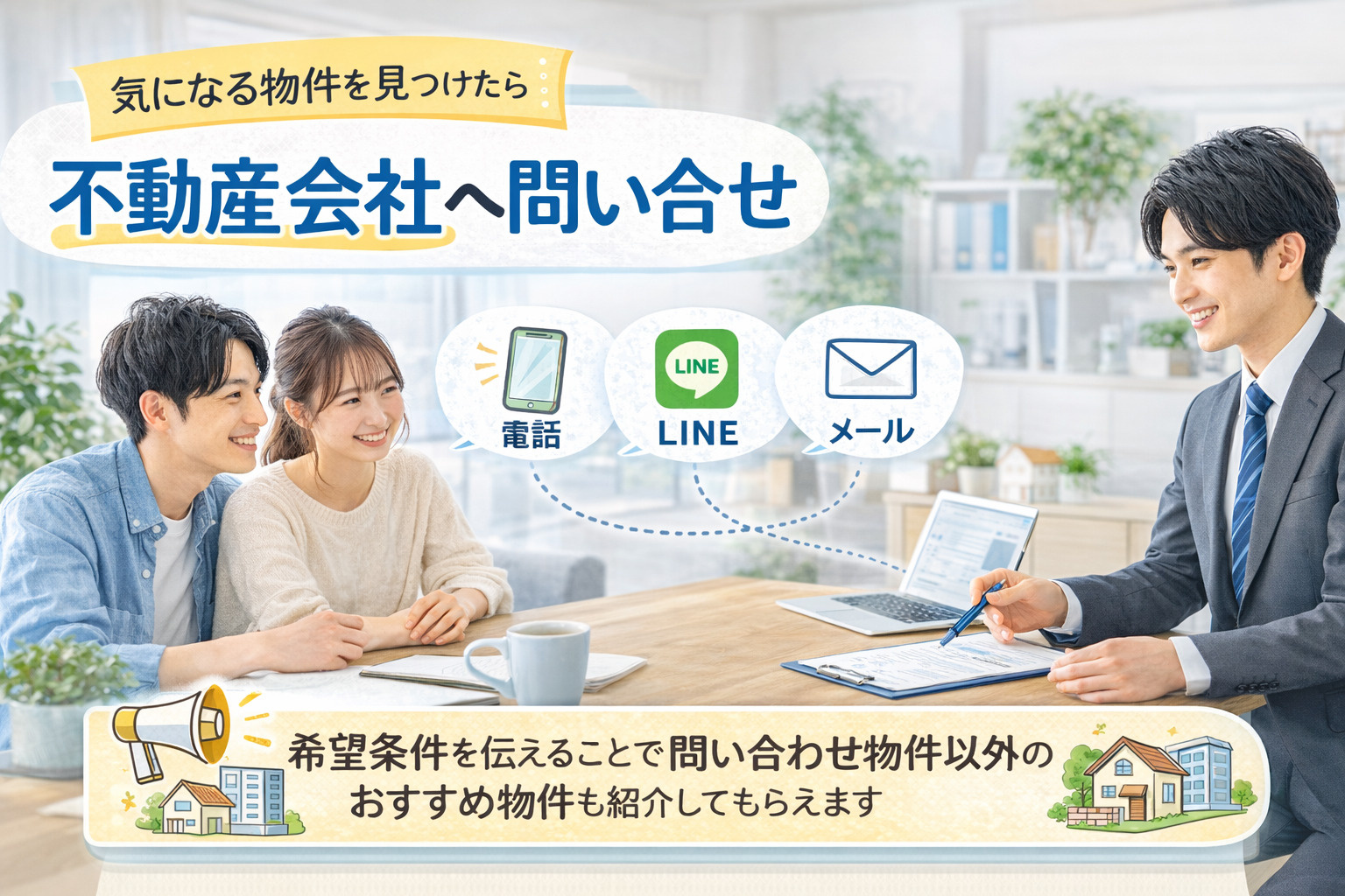 気になる物件を見つけたら、不動産会社へ問い合わせをします。